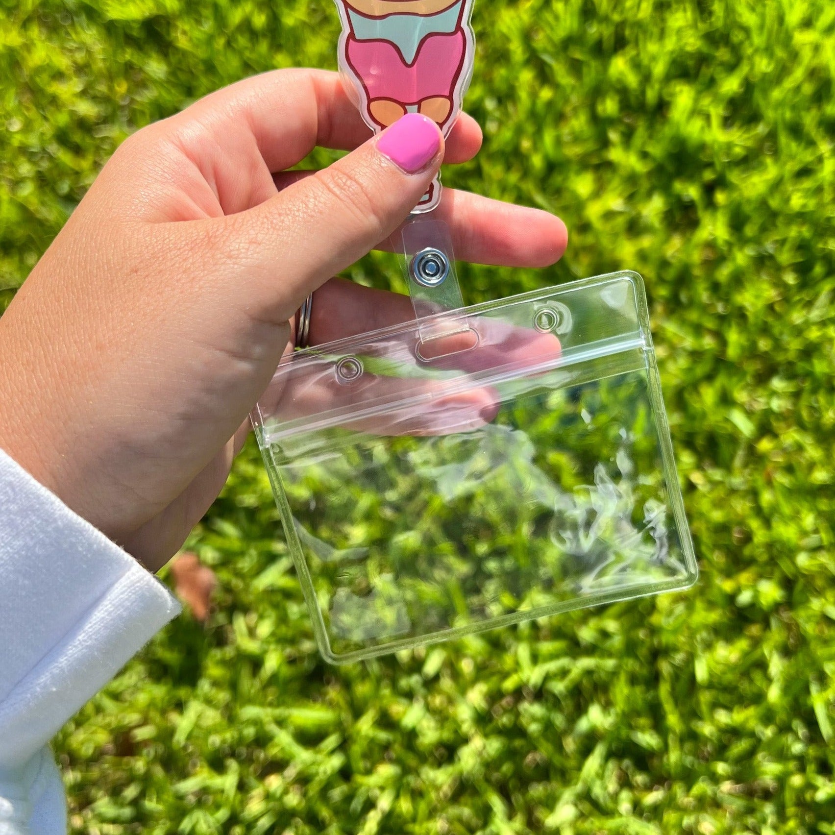 This horizontal clear ID holder is perfect for adding to your lanyard or badge reel! Use this waterproof plastic badge holder to hold your ID or badge. It's perfect for therapists, teachers, and any other professionals who wear a lanyard.