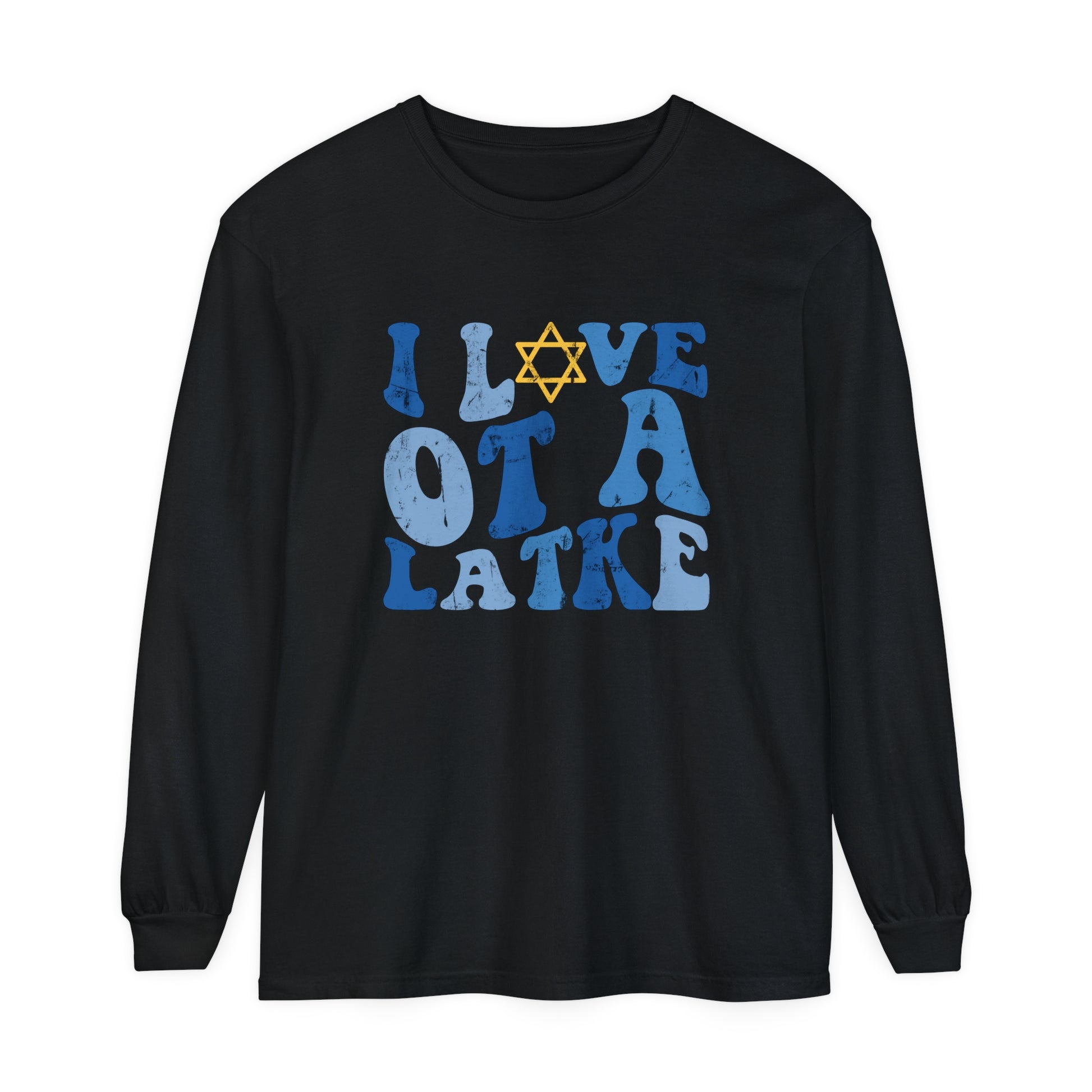 I Love OT a Latke Distressed Long Sleeve Comfort Colors T-Shirt